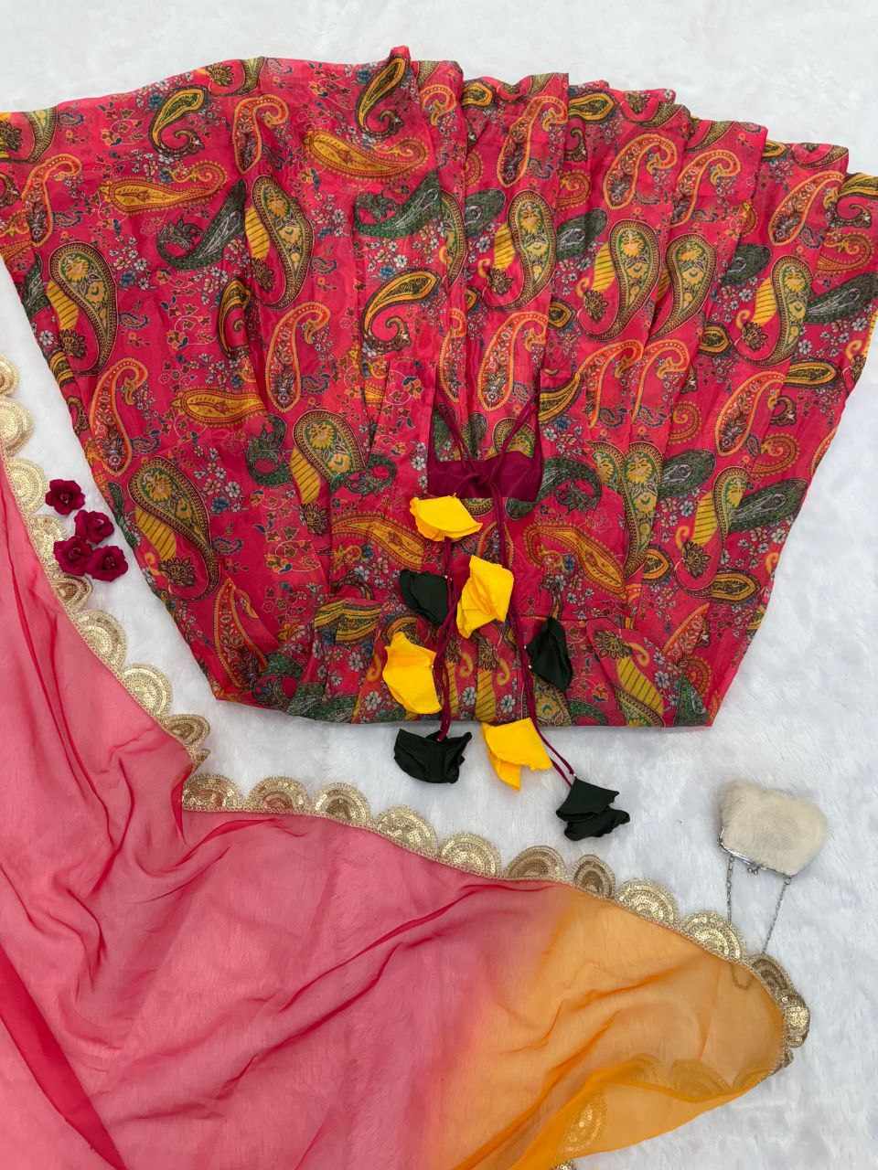 Dupatta – Stylish 2-meter organza printed dupatta with designer lace border.
