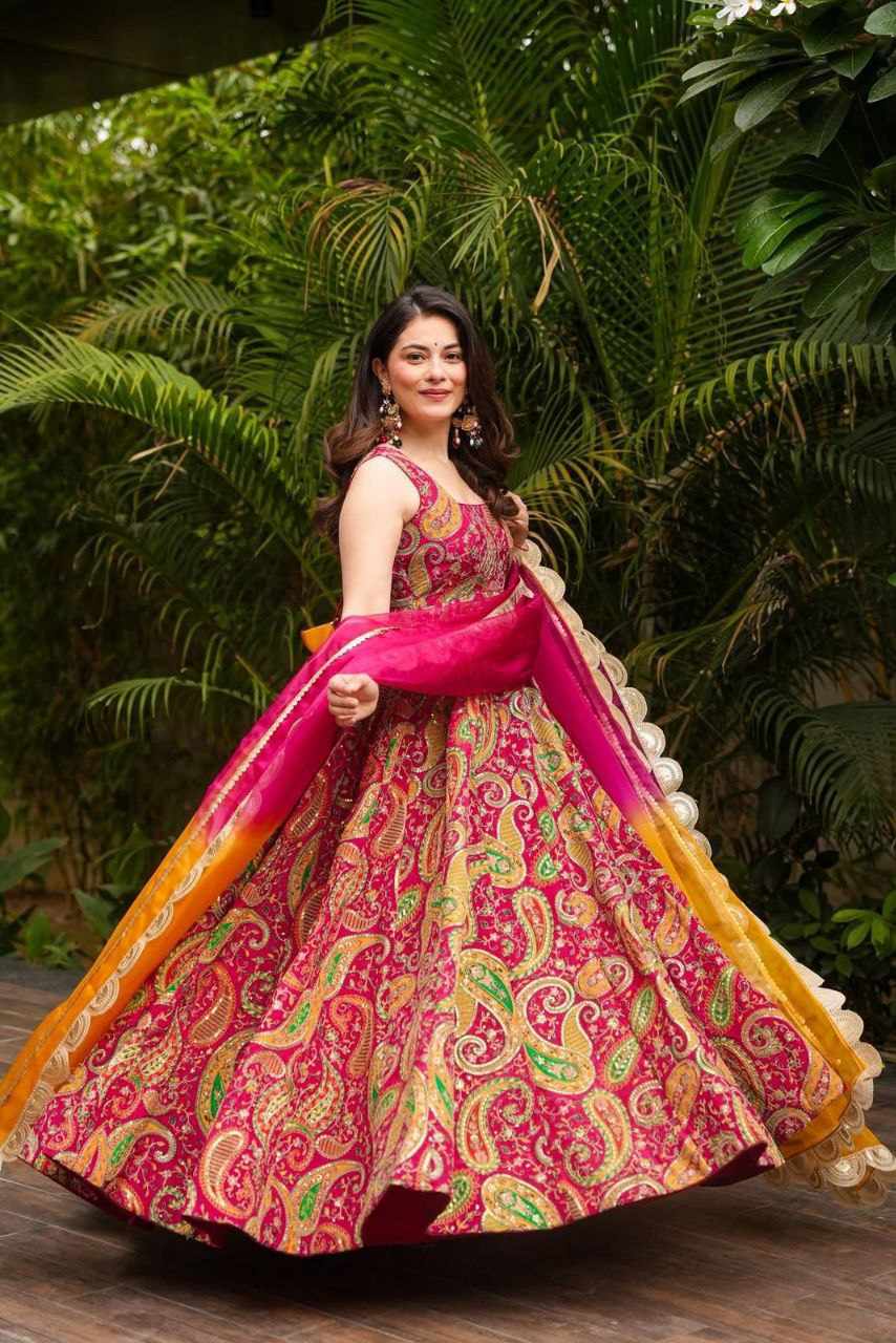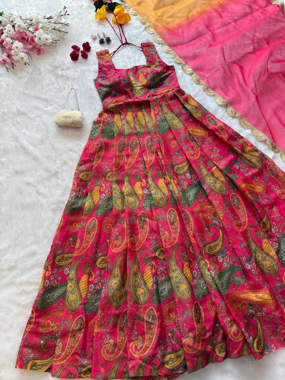Anarkali Gown – Digital printed Jimmy Organza silk suit with a huge, elegant flair