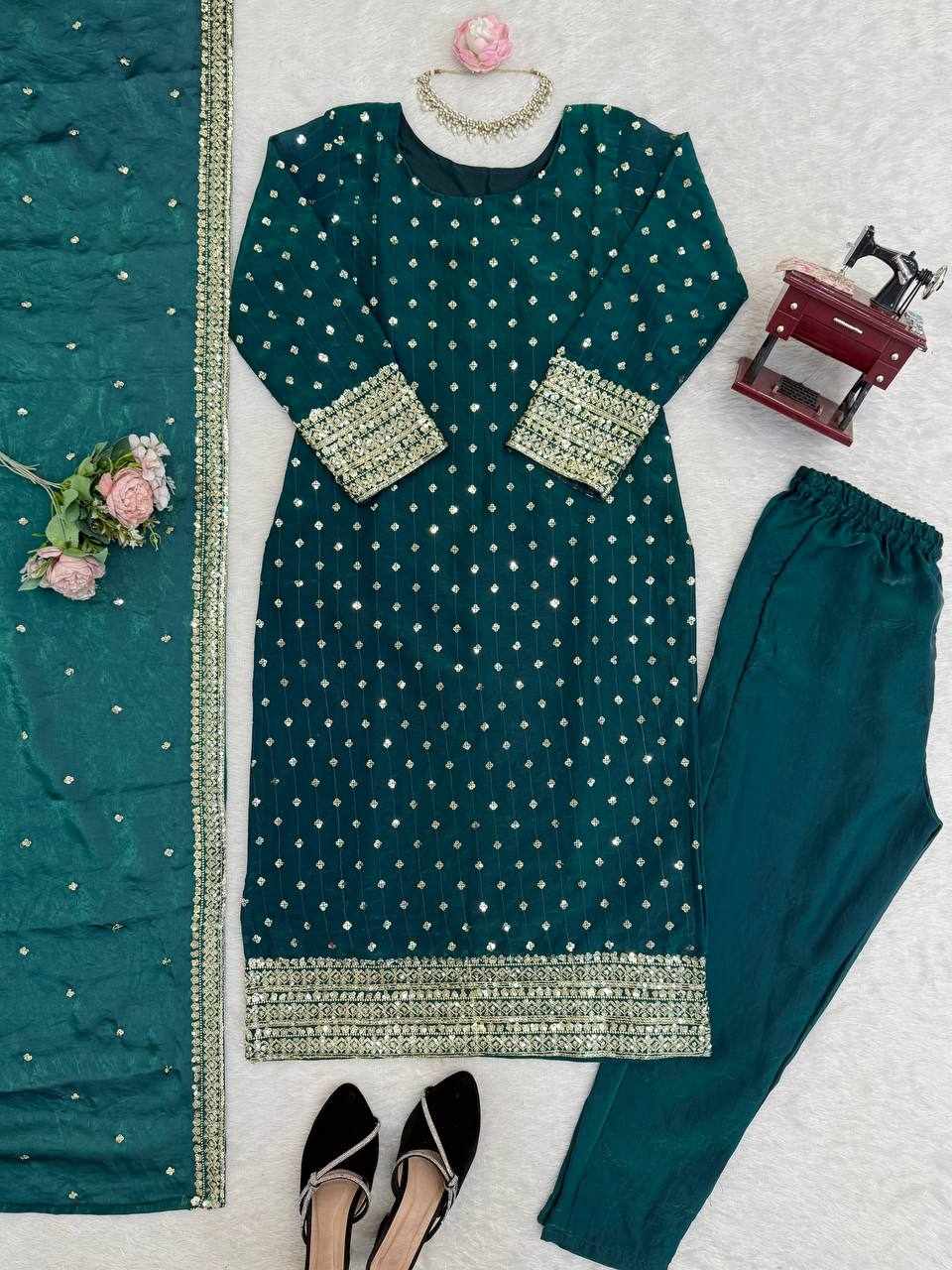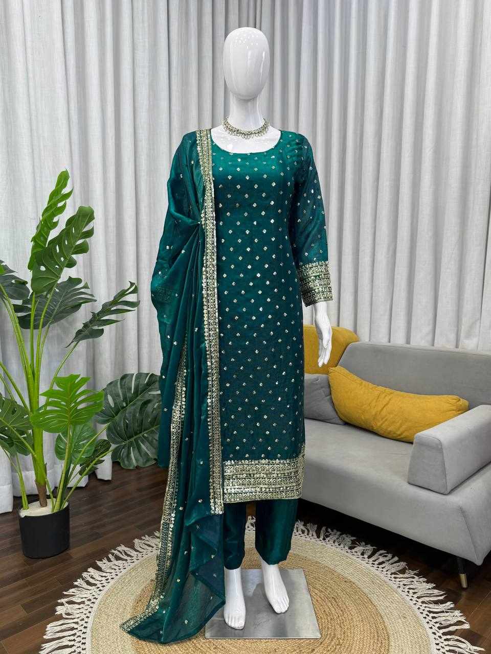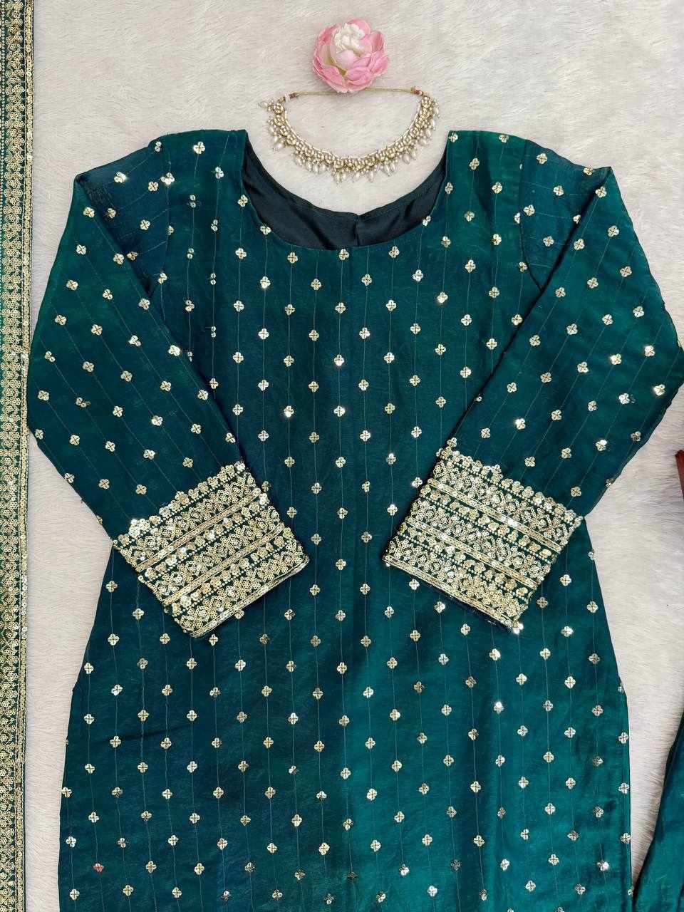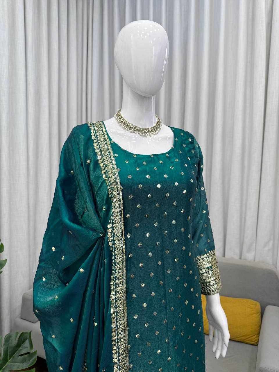 Upgrade your festive wardrobe with this elegant and beautifully crafted suit set, designed to give you a graceful and sophisticated look.