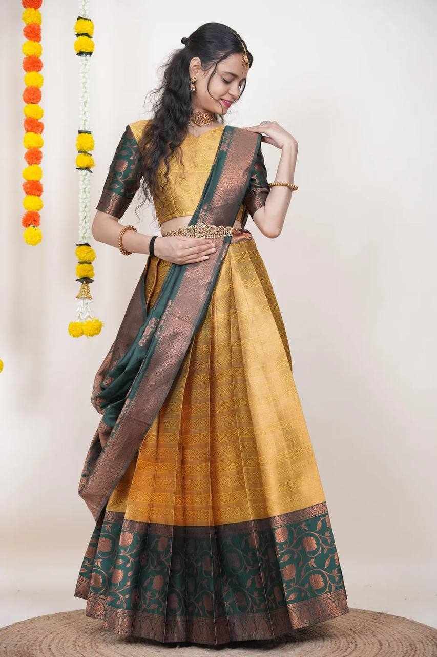 Name : | KPW 330 Yellow Kanjiveram Silk Zari Lehanga |