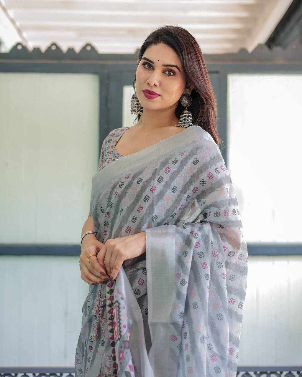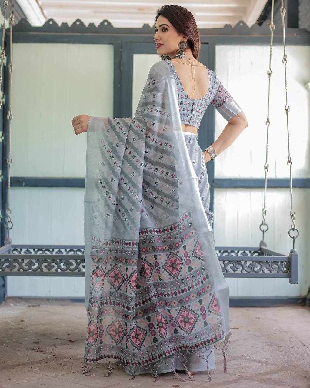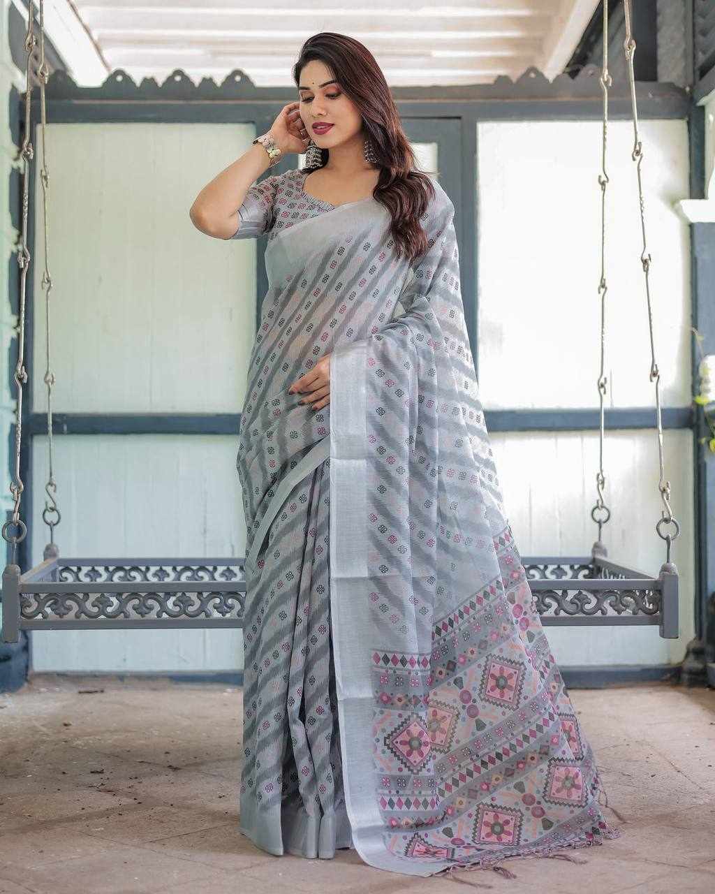 Saree Fabric: Silver Weaving Patta Linen Cotton