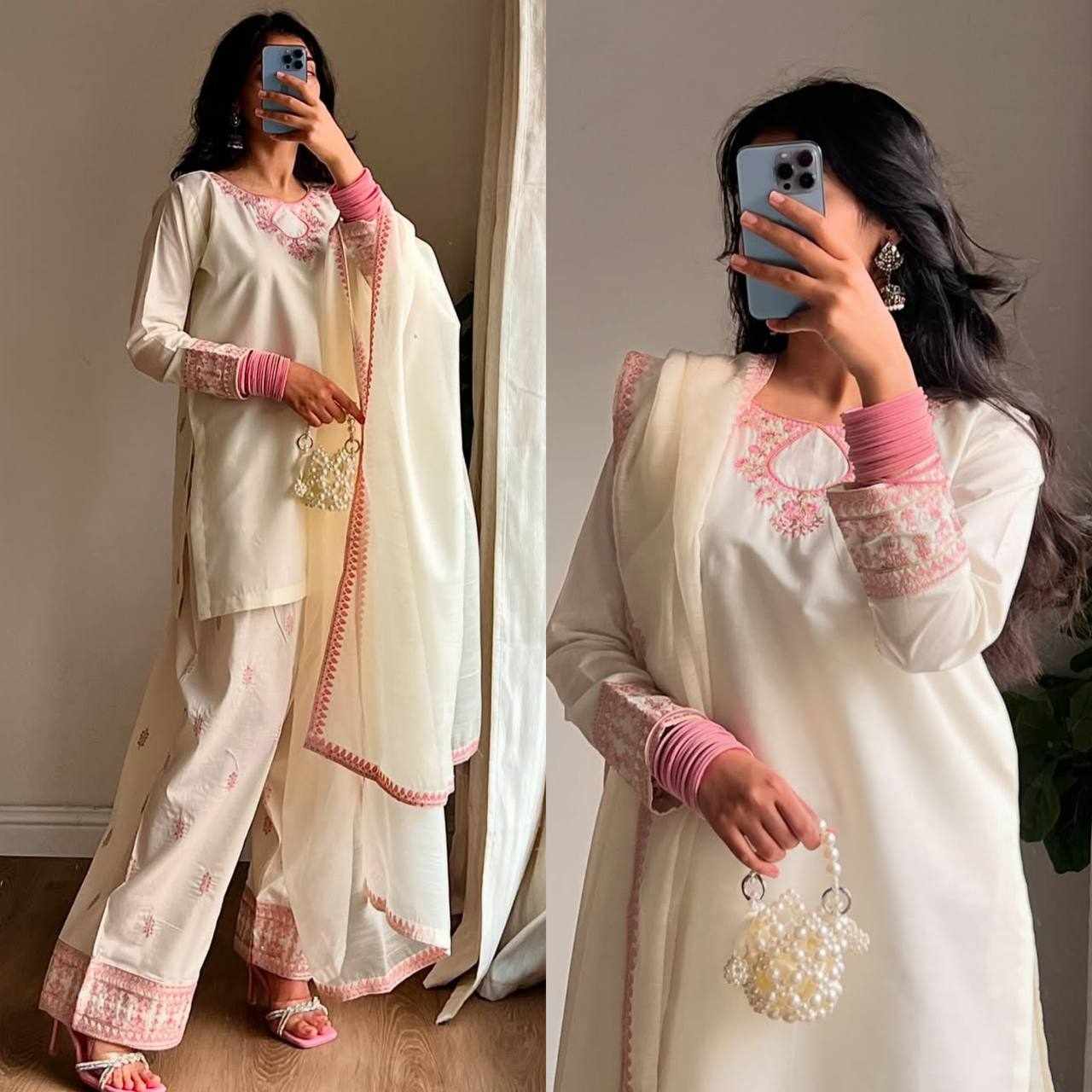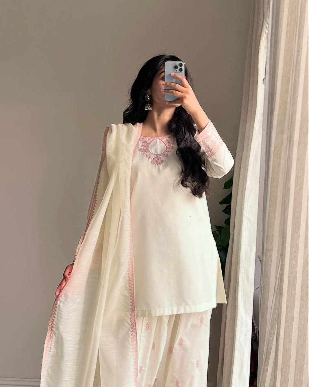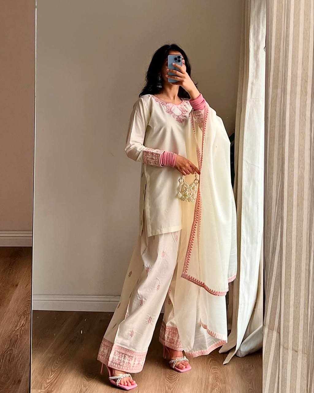 JKWH 998 Pure Fine Cotton Febric Embroidery Work A-line Kurti Set With Pocket