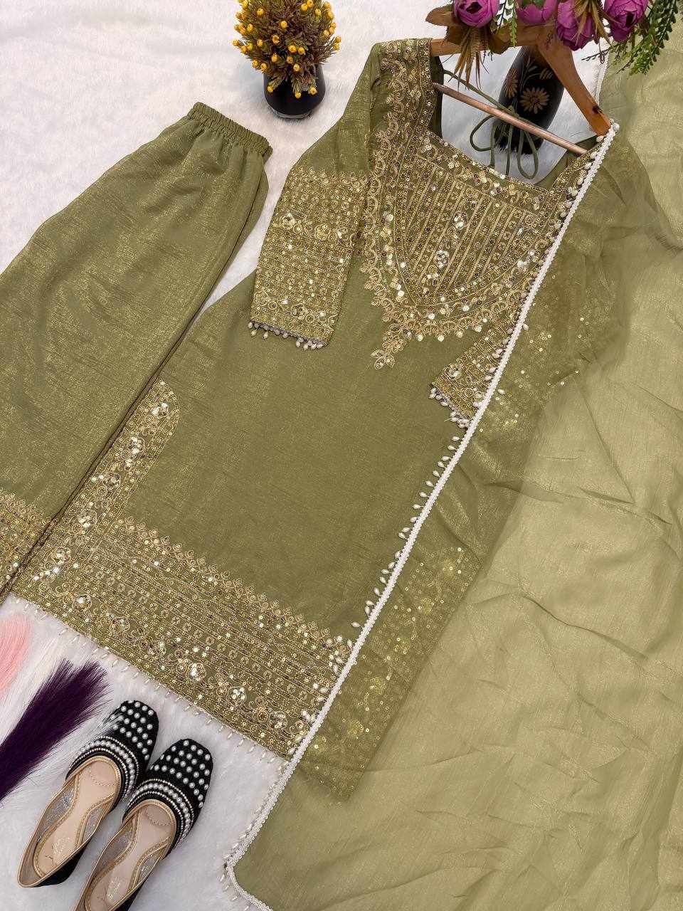• Fabric: Heavy Crunchy Silk with Heavy Thread Embroidery & Sequence Work