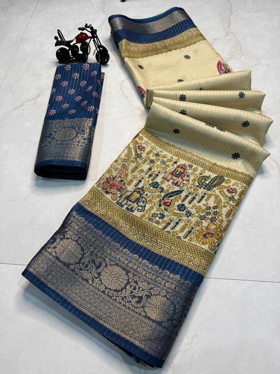 | Name : | PIYU 1044 RECCO HATHI Blue Saree |