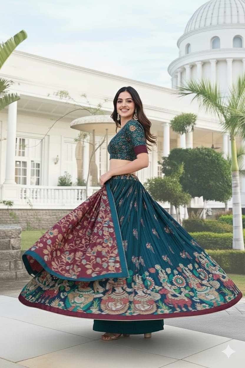 | Name : | PIYU 16-2 Silk Digital print Rama Colour Lehnga |