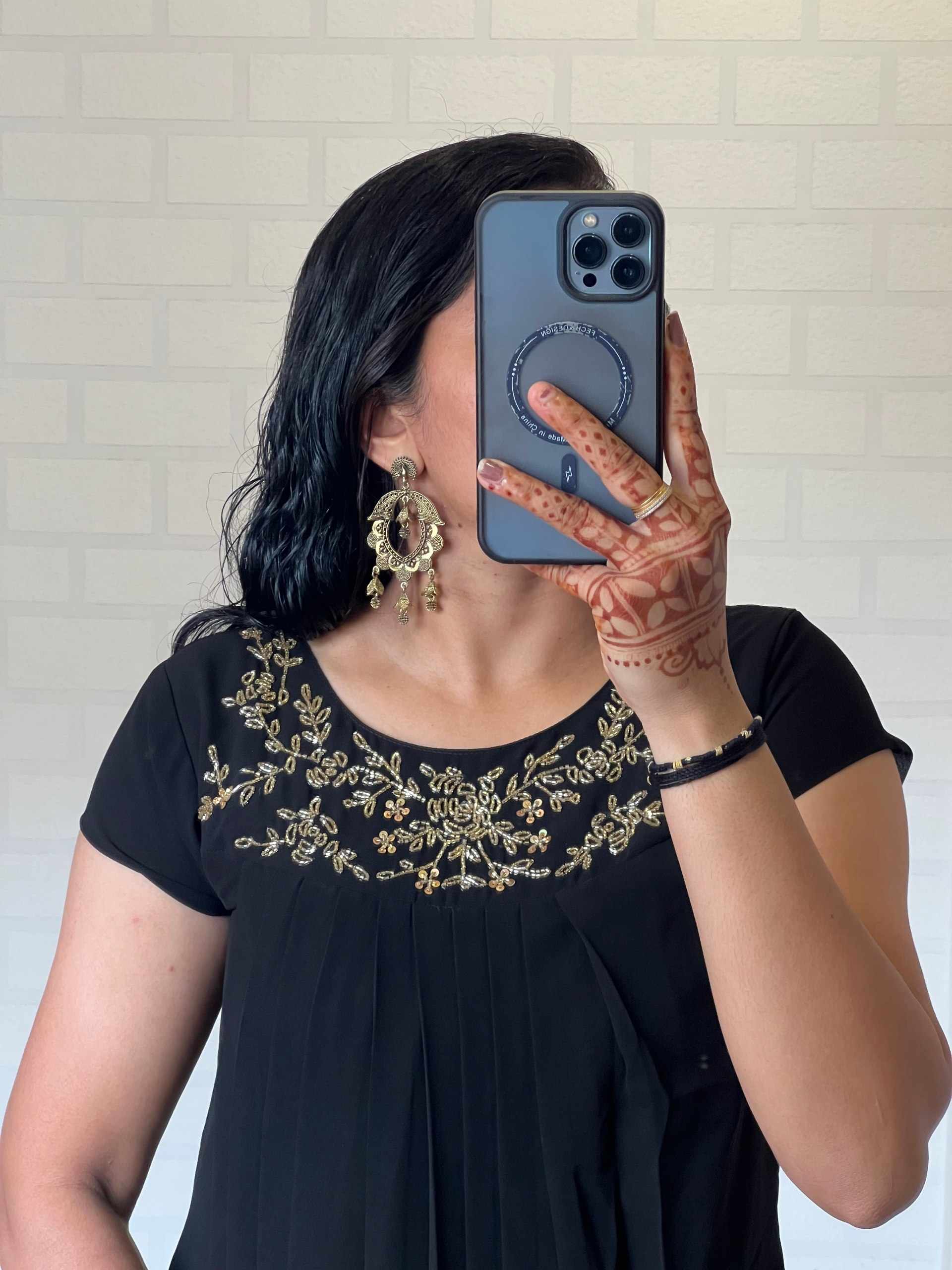 Reviews for WM13 BLACK BLOOMING GEORGETTE DESIGNER KURTI