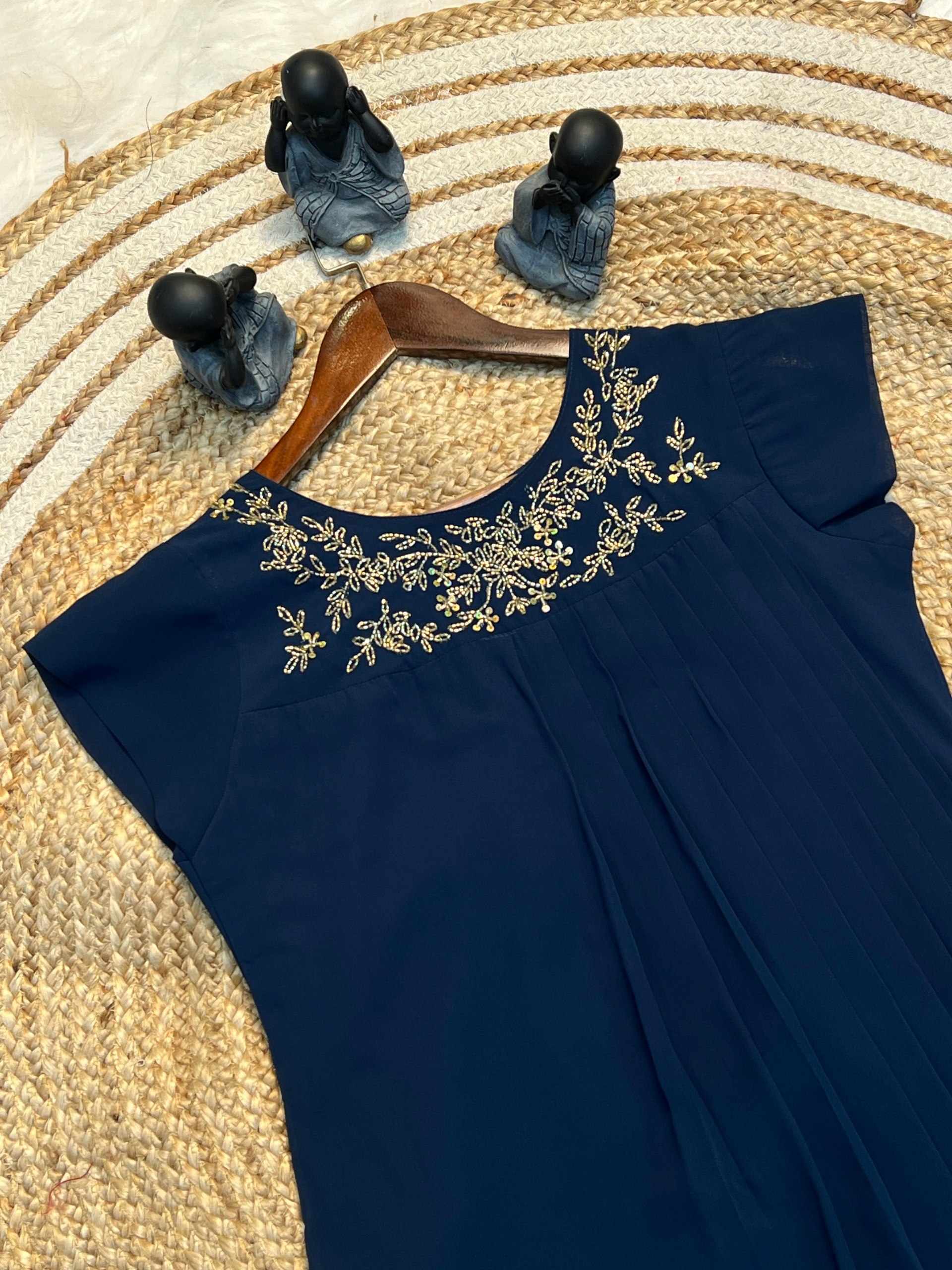 FABRIC - Blooming Georgette Handwork Kurti with Cap Designer Sleeves (Khatli - Maggam Wo